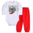 Комплект складається з боді на довгий рукав та штанями червоного кольору.