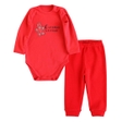 Комплект включає в себе: боді з вишивкою та штанці Боді червоний з довгим рукавом Машинна вишивка Тканина боді: інтерлок Склад: бавовна 100% Трикотажні червоні штанці на резинці Тканина: рібана Склад: бавовна 95%, еластан 5%