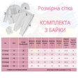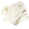 Включає в себе: кофточку, штанята на манжетах, шапочку, пінетки та крижму