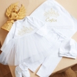 Повний комплект для хрещення дівчинки з іменною крижмою у білому кольорі