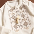 Прикрашений даний костюм оригінальною вишивкою у бежево-коричневих кольорах і нагадує мережку
