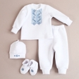 Усе необхідне в одному наборі: кофта, штани, шапочка, пінетки та крижма