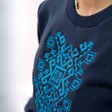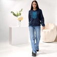 Жіночий світшот джинсового кольору із синьою вишивкою