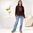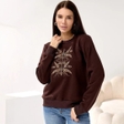 Жіночий коричневий світшот з вишивкою у вигляді золотистих колосків